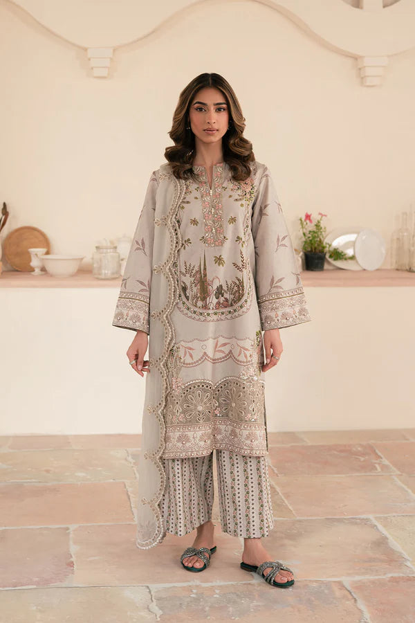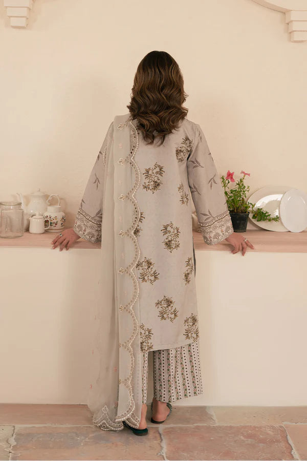 Printed lawn embroidered shirt, paired with printed lawn silk trouser & contrasting embroidered chiffon dupatta