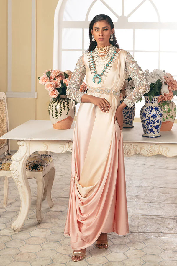 - Chamois Silk Tie & Dye Modern Cutline With Heavily Embellished Net Sleeves