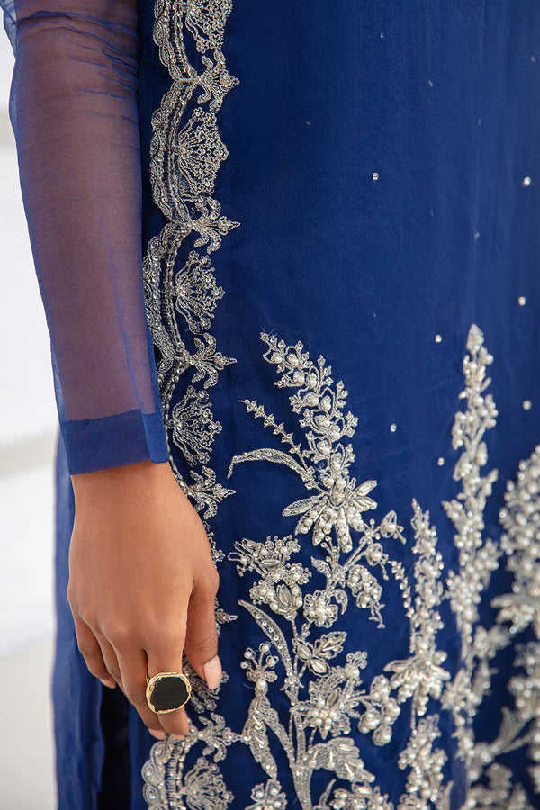 - Royal Blue Organza Long Shirt Paired With Raw Silk Trouser & Inner