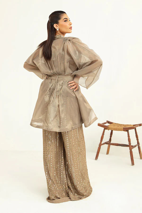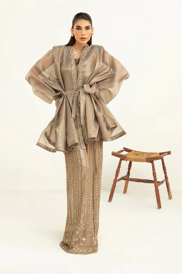 - Complement with raw silk inner and heavy embellished culottes
