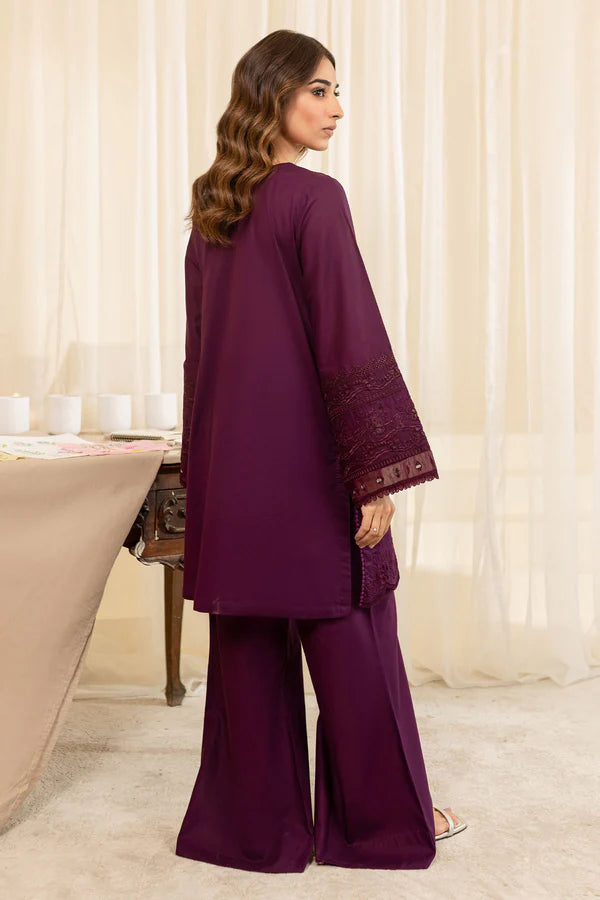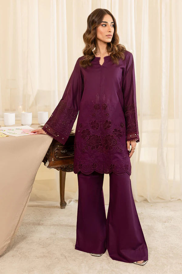 - Embroidered Laser Cut Lawn Shirt Paired With Dyed Cotton Trouser