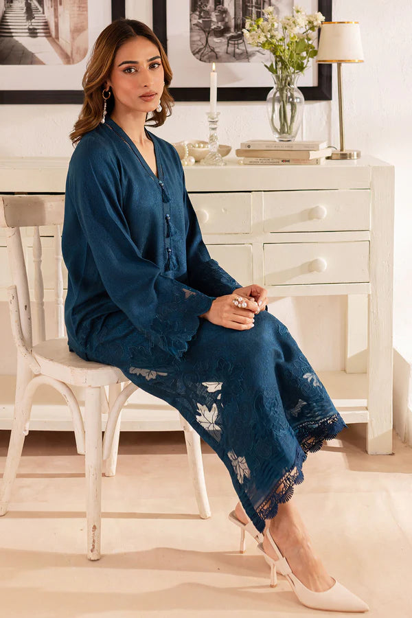 - Embroidered Laser Cut Leather Peach Shirt Paired With Dyed Leather Peach Trouser