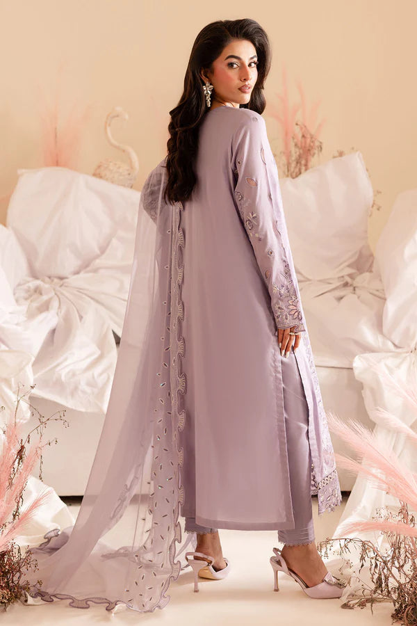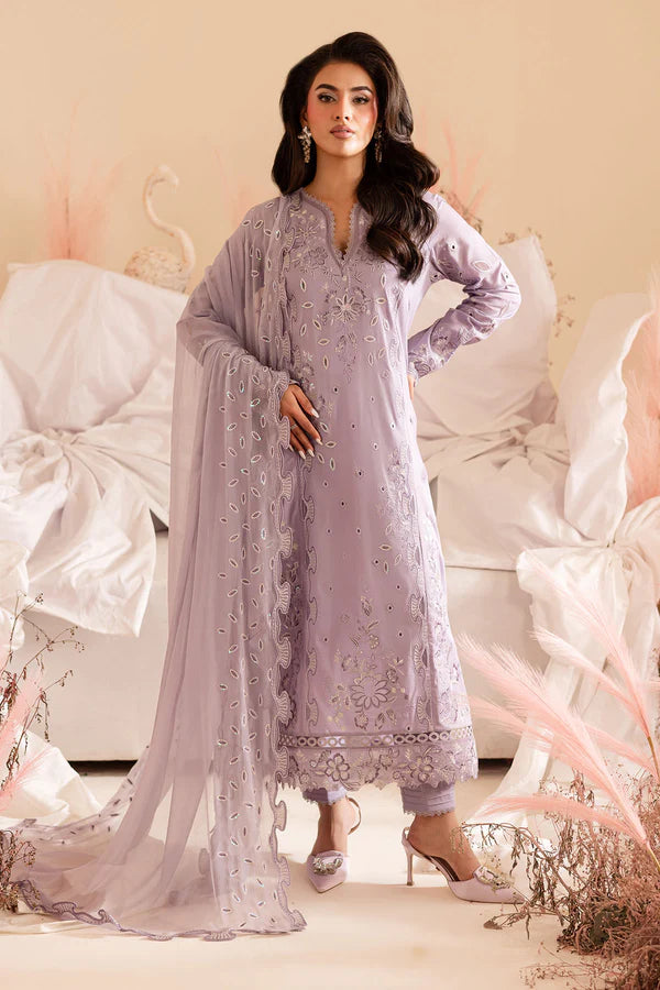 - Embroidered Laser Cut Lawn Shirt Paired With Embroidered Chiffon Dupatta And Dyed Cotton Trouser