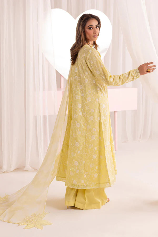 Embroidered Lawn Anghrakha Paired With Embroidered Chiffon Dupatta And Dyed Cotton Trouser