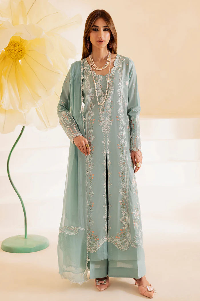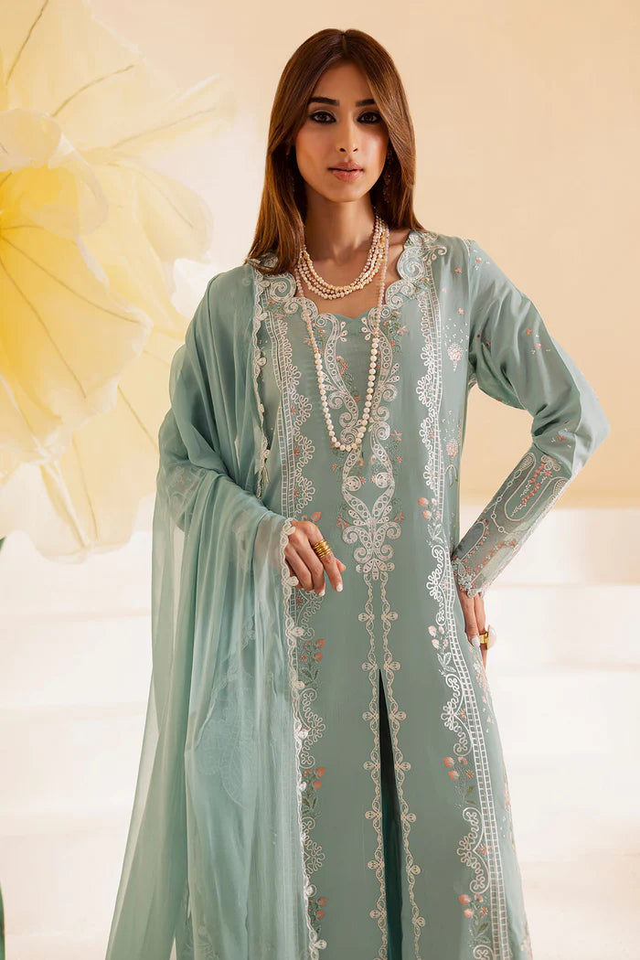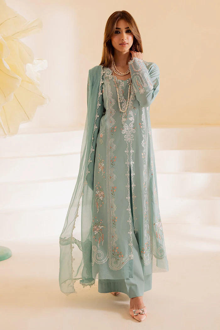 Embroidered Lawn Shirt Paired With Embroidered Chiffon Dupatta And Dyed Cotton Trouser