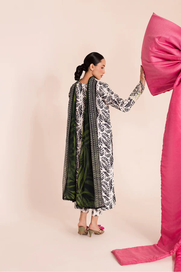Embroidered lawn silk shirt, printed chiffon dupatta, printed lawn silk trouser